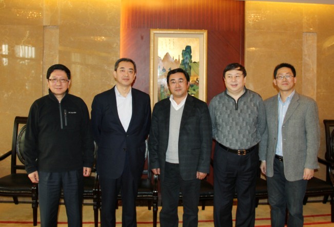 夏海钧总裁(左二)与凌月明副市长(左三)一行合影留念
