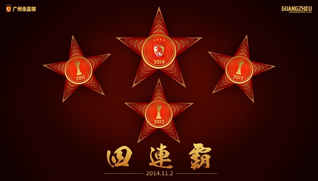 广州以凯泽斯劳滕式的奇迹开始了中超的征程。四年来,共获得了1次中甲冠军、4次中超联赛冠军、1次足协杯冠军、1次超级杯冠军,以及1次代表亚洲足球最高荣誉创造中国历史的亚冠冠军,4年8冠,是当之无愧的亚洲霸主。也是中国足球迄今唯一一支囊括职业足球联赛所有锦标的球队。